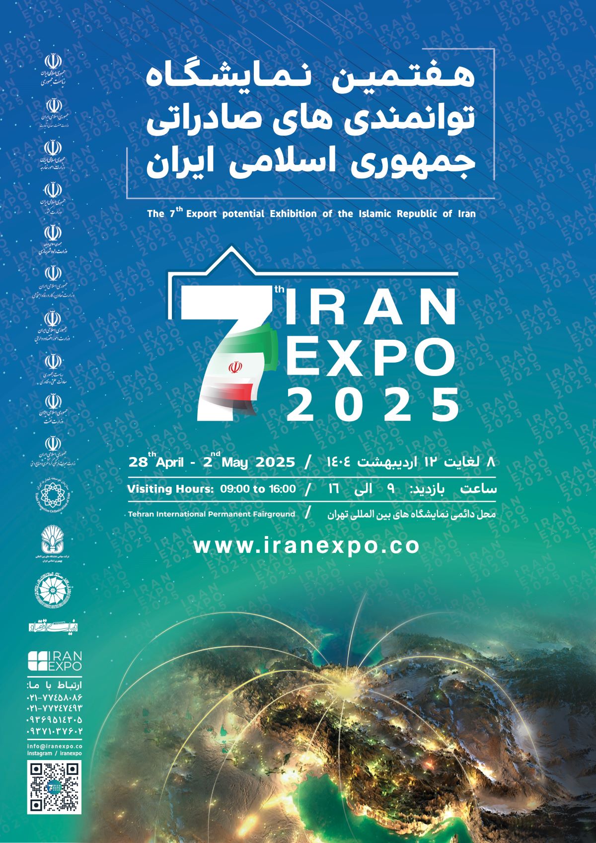 با عنایت به برگزاری موفق ششمین نمایشگاه بین المللی توانمندیهای صادراتی جمهوری اسلامی ایران موسوم به «ایران اکسپو 2024» در اردیبهشت سال جاری با مشارکت بیش از 800 شرکت صادراتی برتر کشور شامل بیش از 150 شرکت دانش بنیان و در 6 گروه کالایی با حضور بیش از 2400 بازرگان و مقام خارجی از 92 کشور جهان، اینک در راستای اجرای سیاست های اقتصادی دولت چهاردهم در حوزه توسعه صادرات غیر نفتی و رونق تجارت خارجی و جهت استفاده از توانمندی و ظرفیت بالای نمایشگاهی کشورمان، قرار است هفتمین نمایشگاه توانمندیهای صادراتی ج.ا.ایران تحت عنوان IRANEXPO 2025 از تاریخ 8 لغایت 12 اردیبهشت 1404 (برابر با 28 آوریل لغایت 2 می 2025 میلادی) در مرکز دائمی نمایشگاههای بین المللی تهران برگزار شود.